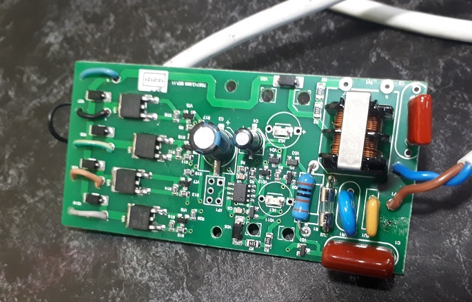 Левая часть схемы – это питание микросхемы и транзисторов. В самом начале установлены два предохранителя – один плавкий на 2А, другой самовосстанавливающийся RV25F на 0.25А 240В. Именно во втором предохранителе и кроются основные проблемы прибора. Если бы его не было, прибор был бы намного надежнее.
