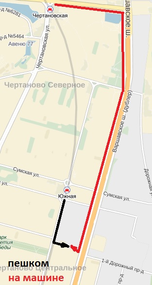 Сервисный центр Комплэйс находится в одной остановке от станции метро Чертановская – в 20 метрах от м. Южная. Схема проезда на машине показана на рисунке. Ехать примерно 4 минуты. На метро примерно столько же, от станции Чертановская – одна остановка.