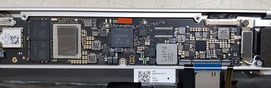 На плате распаяно все – процессор со встроенной видеокартой, оперативная память, SSD, Wi-Fi. Например, в Chromebook Pixelbook 2017 на плате присутствует процессор i5-7y57 со сверхмалым потреблением. Настолько малым, что на нем отсутствует кулер, да и радиатора тоже нет. Энерговыделение порядка 3 Вт.