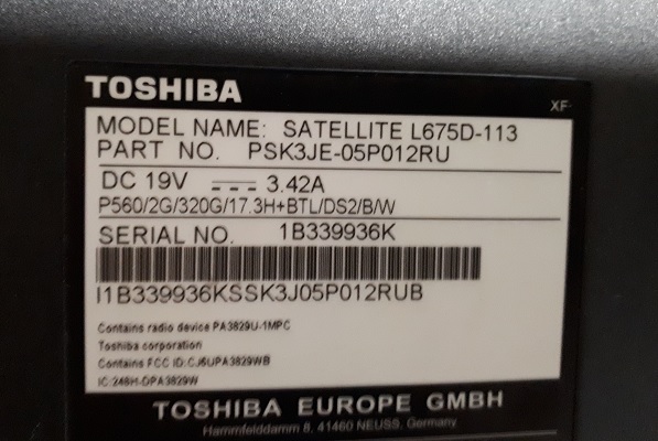 В ремонт поступил ноутбук Toshiba L675D: включается, но не загружается, не горит экран, нет изображения на дисплее.