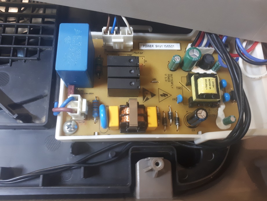 Оказалось, что проблема не только в блоке питания, но и датчике контейнера воды. Если датчик не обнаруживает контейнер с водой, очиститель- увлажнитель не работает совсем.