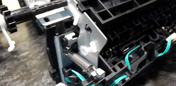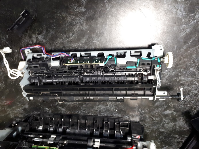 В ремонт поступил принтер HP LaserJet Pro M201dw, у которого лист застревал в печке. Одной из причин застревания бумаги является повреждение термопленки в области узла термозакрепления (печки). В нашем случае листы бумаги застревали в печке из-за того, что термопленка была порвана и листы упирались в оторванные куски термопленки. Для устранения неисправности требуется замена термопленки. В принтере LJ Pro M201dw используется термопленка для HP LJ 1200.