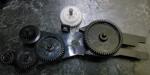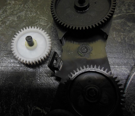 Эта ось пластиковая , отломана в месте крепления к корпусу редуктора.