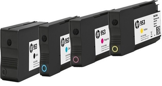 Картриджи HP 953 – это чернильницы, из которых чернила подаются в печатающую головку принтера. Они имеют чип, по которому программным способом принтер примерно оценивает остаток чернил. Картриджи подходят для МФУ HP Officejet Pro 8710,8715,8720,8730,8210,8725.